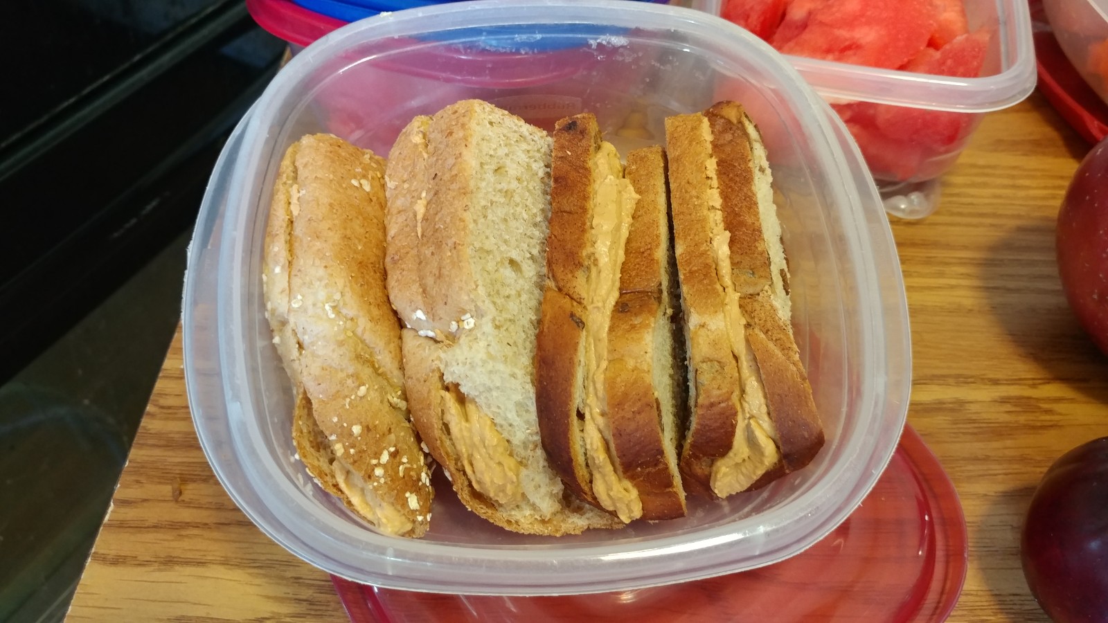 - Peanut Butter Sandwich Halves (made with peanut butter powder, so the peanut butter is 50 calories a serving).