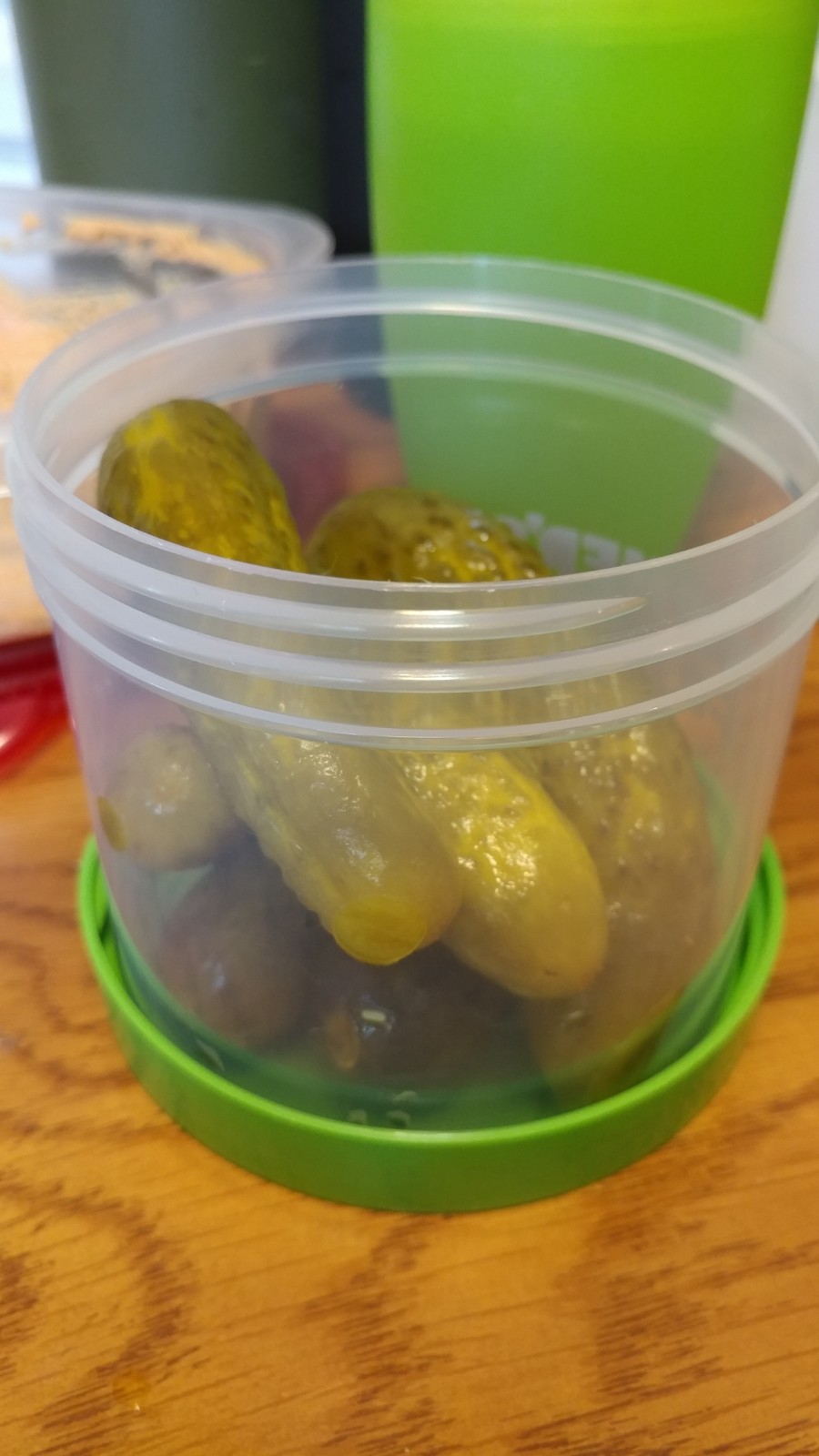 - Pickles (packed in a container with a screw top).