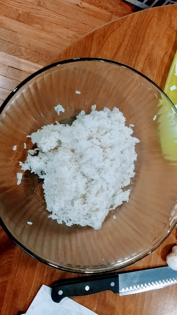 I cooked 1 cup of rice as directed on the package. Put it in a bowl.