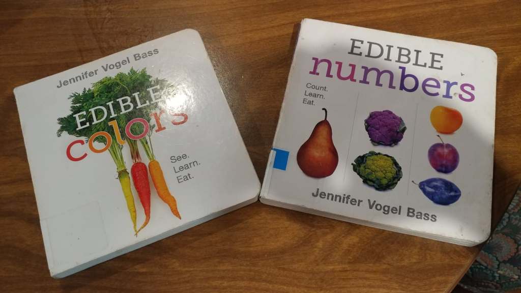 While still in the children’s section, we picked up these two board books that I have read over and over again to my daughter when she was a 1 year old so I could go over them again with her. Catawba-Lynn, my daughter, understands her colors and counting, now that she is 3, but I think it is great for her to repeatedly work on identifying her produce.