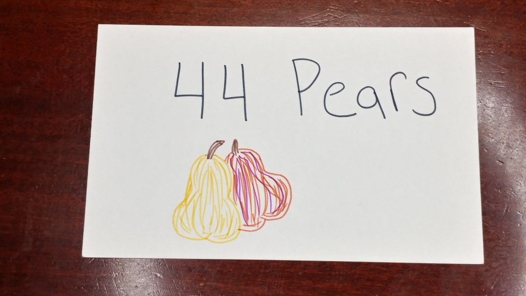 Very surprised at this. Only 44 pears. My family consumes pears towards the Fall part of the year, so they are in competition with apples, but I was very surprised at only having purchased 44 of them, as I find pears to be fantastic! But they bruise easily and do not like traveling and it is difficult to cut them in the morning and bring them along on an adventure to eat with lunch. And cut pears don’t make the cleanest finger foods. Apples are easier. So I think those are my reasons we didn’t have as many in 2020. And again, we found a new-for-us type, red pears, and I love them. We bought them until they were no longer available for the season at Produce Junction.