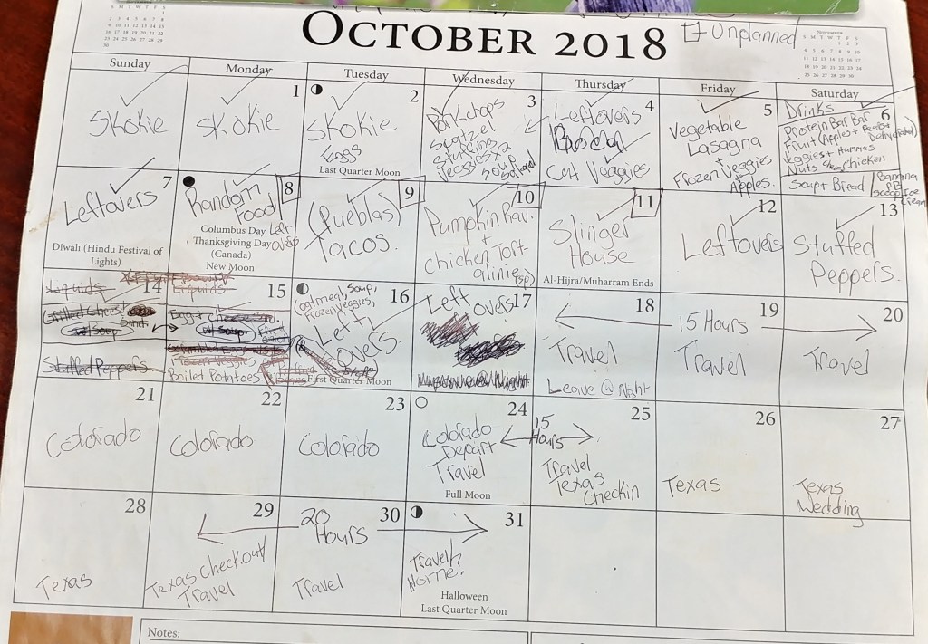 We did a lot of traveling in October 2018.  We purchased our latest teardrop camping trailer (which has since been sold due to our out of state transfer) the previous month, September 2018, and drove it to Colorado.  Catawba-Lynn, our then 2-year-old, dictated when she wanted us to stop so we boondocked along the way.  I do not like staying at a hotel for 6 hours and paying for a whole night’s stay, so the teardrop came in hand.  She woke up annoyed that she was still in her car seat, we pulled over and slept for a bit.  It was out first trip to Colorado.  We were heading out to visit some of Luke’s family.  Excellent time.  Our visit consisted of cooking – cooking all day long, just a bunch of us hanging around the house cooking – me grabbing Catawba-Lynn and my dog, Jude, and going hiking, and Sprouts.  I was introduced to Sprouts grocery store and I instantly fell in love.  Like a crazy person I purchased roughly $200 in produce, tea, and protein bars for the week we were in Colorado.  The quality was mind boggling and the price was so cheap!  When I had leftovers after the week in Colorado, I waved off my over purchasing as “intentional” and not a spur of the moment or irrational, stating the rest of the food was for the trip to Texas.  When we left Colorado, we went South right away, going to Texas for Luke’s Army friend’s wedding.  Luckily, the hotel that the wedding was staying at allowed Jude for roughly $30 a night!  I was so excited – I love taking my dog with me.  We made it home just in time for our Trick-or-Treat handout on the 31st.