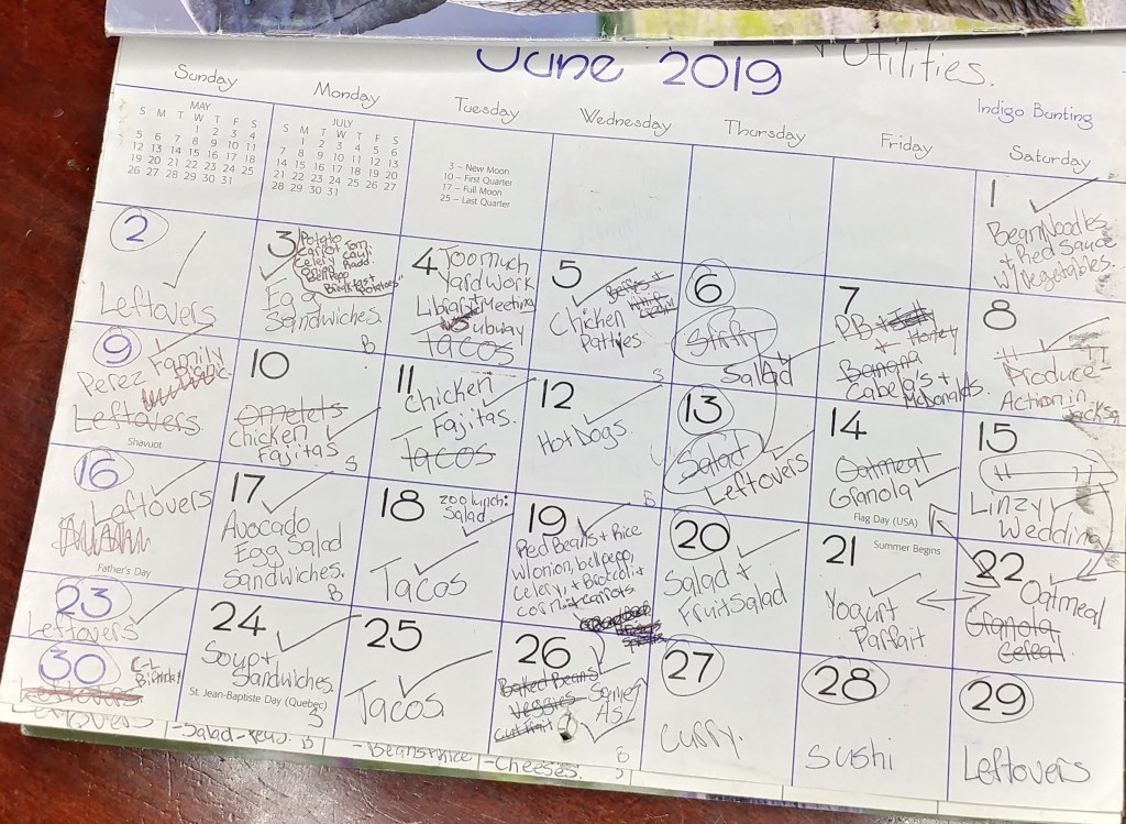 FYI: There are a lot of calendar pictures in this post. Plus it is long, so I will be splitting it up in to several parts. This is Part 3. Parts 1 & 2 contain all of 2018. If you are interested in another year of meals, take a look at those two previous posts.