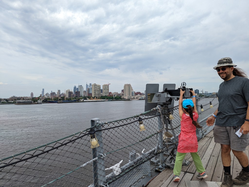 Battleship New Jersey was another library museum pass that we utilized. I’m well aware that Battleships are large, but I could not fathom how huge and a complete mini city the ship was. I forgot I was on a ship. It was amazing! Up on the deck, equip with sound effects, model 50-cal machine guns were mounted at the sides of the ship. Museum goers could pretend to man the guns. Of course, we very much enjoyed “attacking” the enemy – Philadelphia.